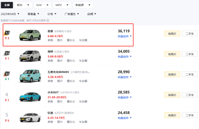 当下新能源车市场的竞争异常激烈,一些车型通过降价和增配手段,促进了销量的增长。就当下热门的小型车市场来说,这一现象十分突出,一些新车起初销量不错,但随着时间的发酵,便会因为产品竞争力的失去和削弱,出现销量下滑的情况。作为参考,吉利星愿和比亚迪海鸥就是两款颇具代表性的产品,两者均为小型车,售价接近,月销量数据也相差不多,是公认的竞争对手。